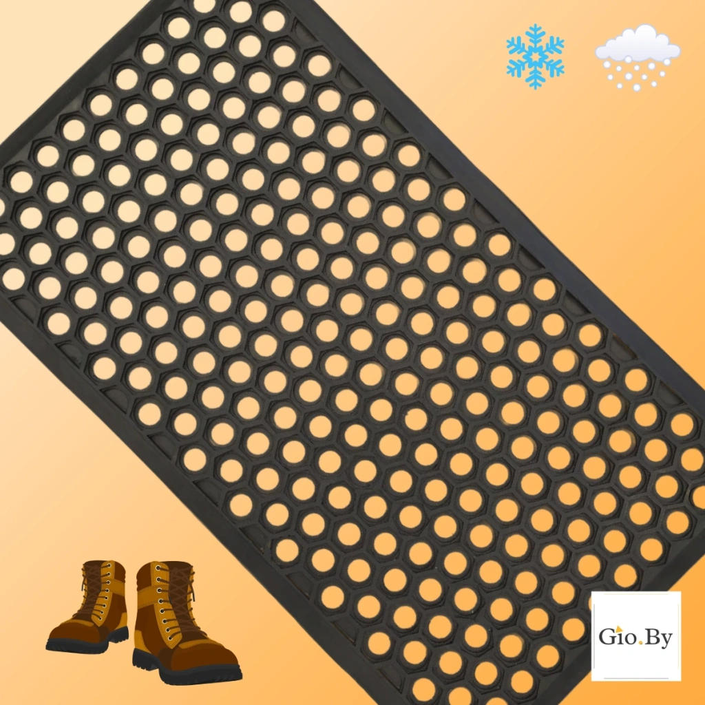 Придверный коврик из высококачественной резины. Выполнен в дизайне "медовых" сот с плотными и упругими гранями. Подойдёт для любого помещения, где необходима защита от скольжения и сбор небольших фракций грязи и снега с подошвы.